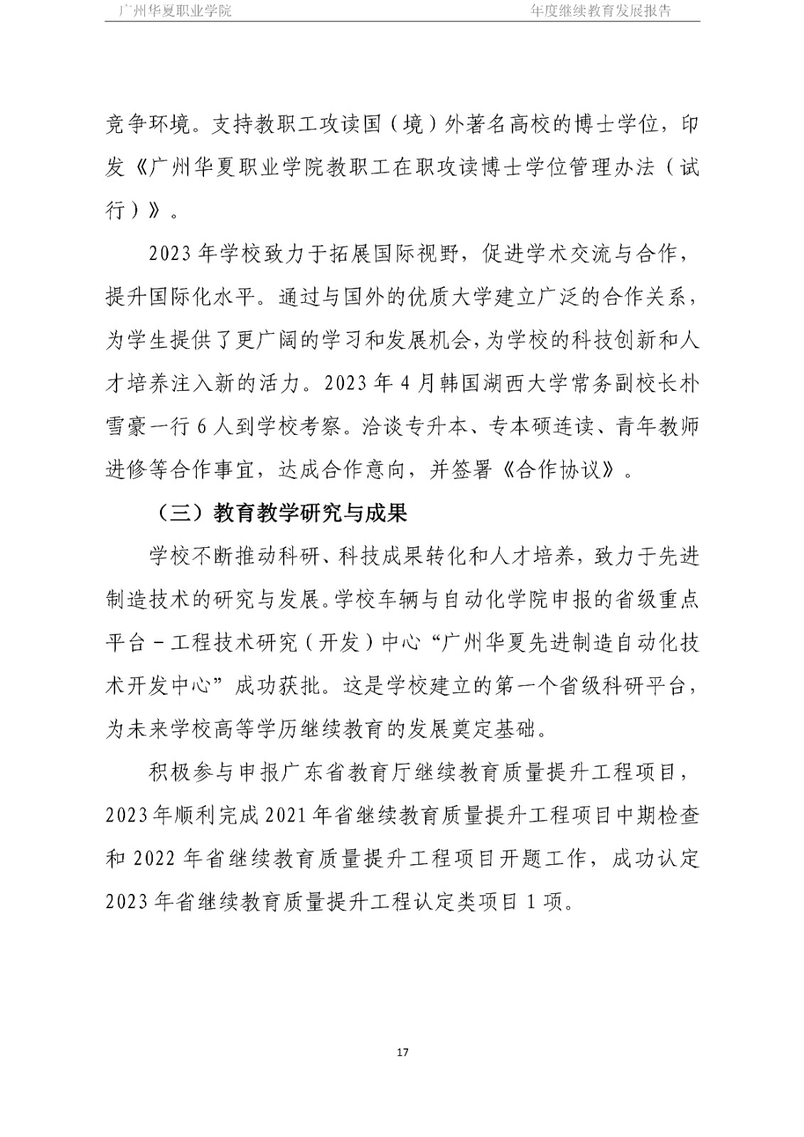 广州华夏职业学院2023年度继续教育发展报告
